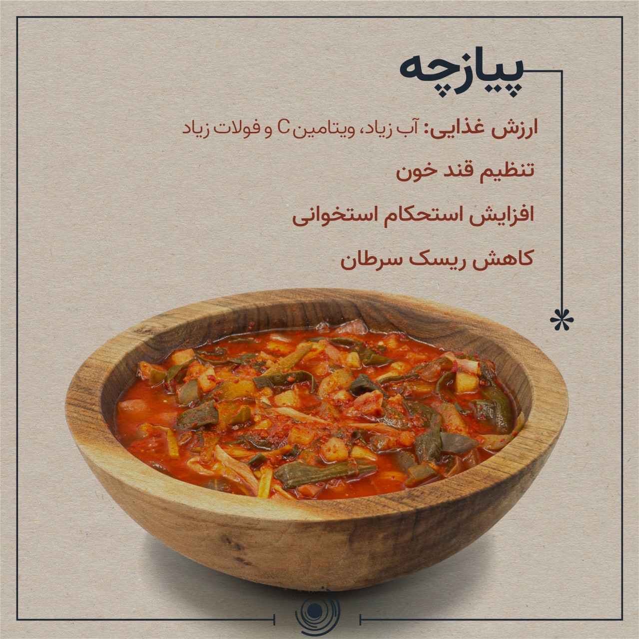 حاصل فرآیند تخمیر سبزیجات در این غذا، پرورش باکتری های پروبیوتیک از جمله لاکتوباسیلوس هاست. طعم و کیفیت این محصول وابسته به عناصر تشکیل دهنده، شرایط تخمیر و لاکتوباسیلوس های موجود در آن دارد.