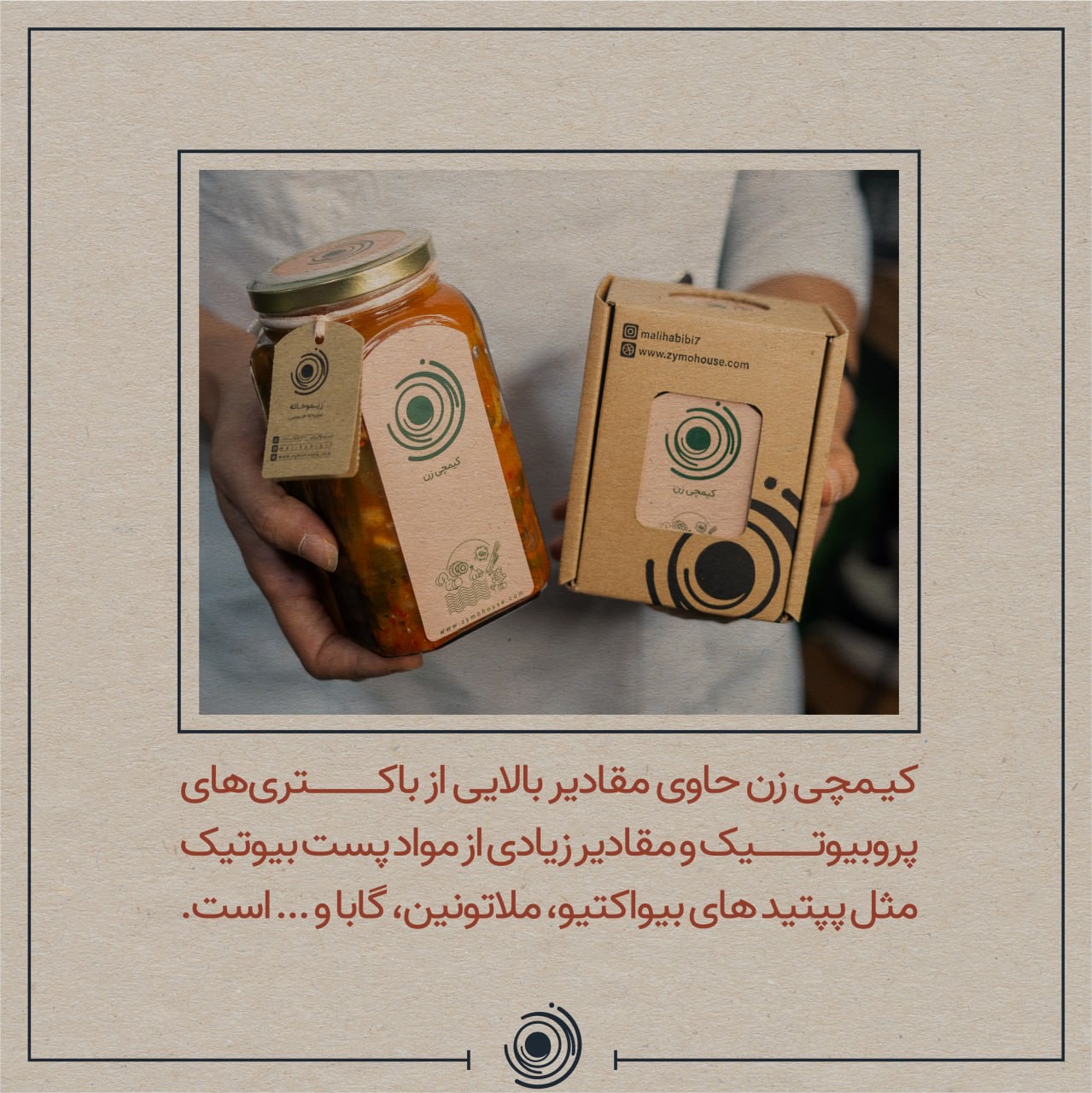 یکی از مهمترین برتری های محصولات زیموخانه، وجود پست بیوتیک هایی نظیر اگزوپلی ساکارید ها، پپتید های بیواکتیو، ملاتونین و …. در محصولات است. این پست بیوتیک ها خواص بسیار زیادی دارند که ذکر آن قبلا رفته و در ادامه می توانید در مجله و پیج اینستاگرام زیموخانه آن را دنبال نمایید. شاید دانستن این نکته کافی باشد که شما با مصرف یک قاشق از کیمچی زن، همزمان فیبر غذایی، انواع مختلف آنتی اکسیدان، هزاران هزار باکتری مفید و مواد و متابولیسم های این محصولات به نام پست بیوتیک ها را مصرف می کنید. مصرف مداوم این محصول باعث افزایش اثر تجمعی و ارتقای سلامت شما می شود.