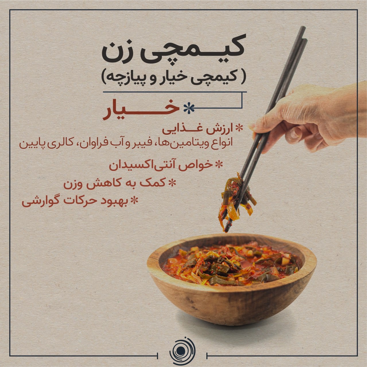 کیمچی زن یکی از پرطرفدارترین محصولات زیموخانه است. در آماده سازی این محصول از خیار، پیازچه، ترب ژاپنی، جلبک نری و گوچوگارو استفاده شده است. این محصولات در فرآیند تخمیر همراه با باکتری های مفید شده و تقدیم شما می گردد. در این مقاله، مختصرا بعضی از خواص مواد سازنده کیمچی زن را با توجه به شواهد علمی بیان خواهیم کرد.